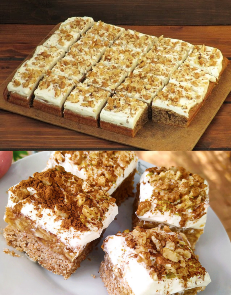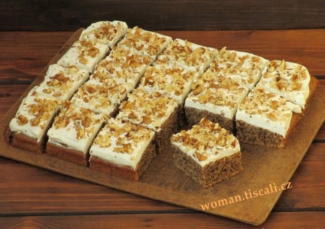 • Zubereitung der Creme und Dekoration: Schlagen Sie die Sahne mit dem Puderzucker steif. Nach dem Abkühlen den Kuchen mit der Creme bestreichen. Zum Schluss mit gehackten Walnüssen bestreuen.