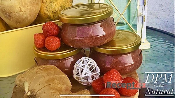 Die Erdbeeren mixen wir mit einem Stabmixer zu einer glatten Masse, wir geben die eingeweichten Chia-Samen, Ingwer, Honig und flüssiges Vitamin C hinzu. Alles gründlich vermischen. Wenn ihr Erdbeeren oder anderes Obst habt, das saftiger ist :) könnt ihr ruhig ungequollene Chia-Samen hinzufügen :) wie wir.