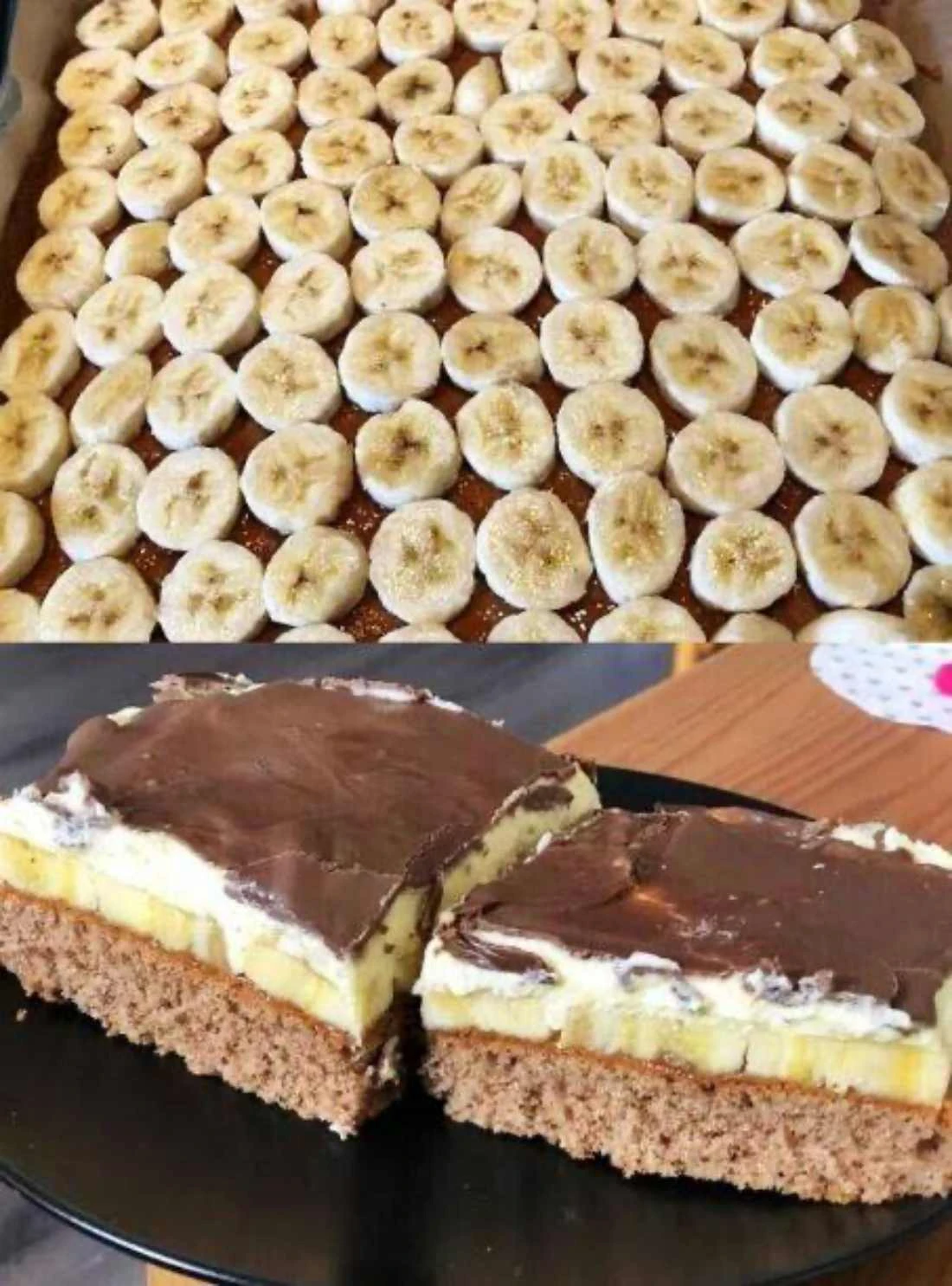 Luftiger Kakaoboden, eine Schicht süßer Bananen, zarte Vanillecreme und glänzende Schokoladenglasur schaffen in diesem festlichen Gebäck eine perfekte Harmonie der Aromen. Ideal für Familienfeiern und den Sonntagnachmittag.