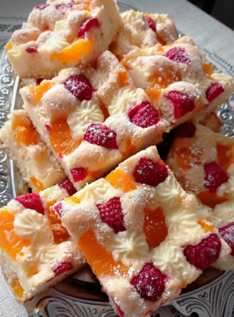 Bublanina mit Mandarinen, Himbeeren und Quark – ein zarter und saftiger Klassiker