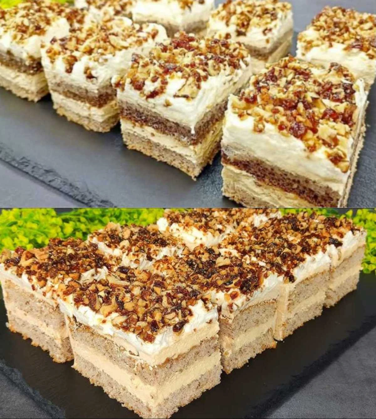 Cremige Schnitten mit karamellisierten Nüssen sind ein süßes Kunstwerk, das Zartheit, Geschmacksreichtum und Texturen vereint. Sie eignen sich hervorragend für den festlichen Tisch, erfreuen aber auch am Sonntagnachmittag mit der Familie. Bereiten Sie sie im Voraus zu, kühlen Sie sie und servieren Sie sie mit Anmut – Erfolg garantiert!