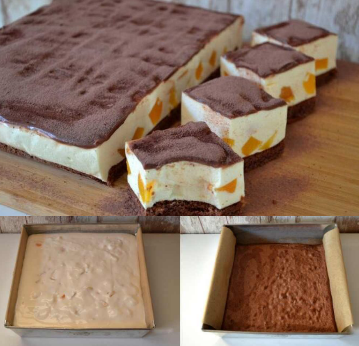 Sehnen Sie sich nach einem süßen Dessert, das Sie einfach und schnell zubereiten können? Dieser cremige Pfirsichkuchen besticht durch einen zarten Kakao-Boden, eine leichte Joghurt-Note und eine reichhaltige Sahnecreme mit Pfirsichstücken. Backen Sie ihn auf einem Blech und genießen Sie ihn nach dem Abkühlen am nächsten Tag.