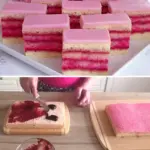 Punschschnitten sind ideal für Feiern, Geburtstage und den Weihnachtstisch. Durch die saftige Mitte und die frische Konfitüre schmecken sie am besten am zweiten Tag, wenn sich alle Aromen verbunden haben. Sie sind sehr haltbar – im Kühlschrank halten sie 4–5 Tage.