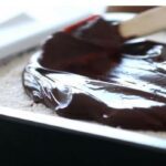 - Zubereitung der Schokoladenglasur: Erhitzen Sie die Sahne in einem Topf bei geringer Hitze – sie darf nicht kochen! Fügen Sie die Schokoladenstücke hinzu und nehmen Sie den Topf vom Herd. Lassen Sie die Mischung eine Minute stehen und rühren Sie dann glatt.