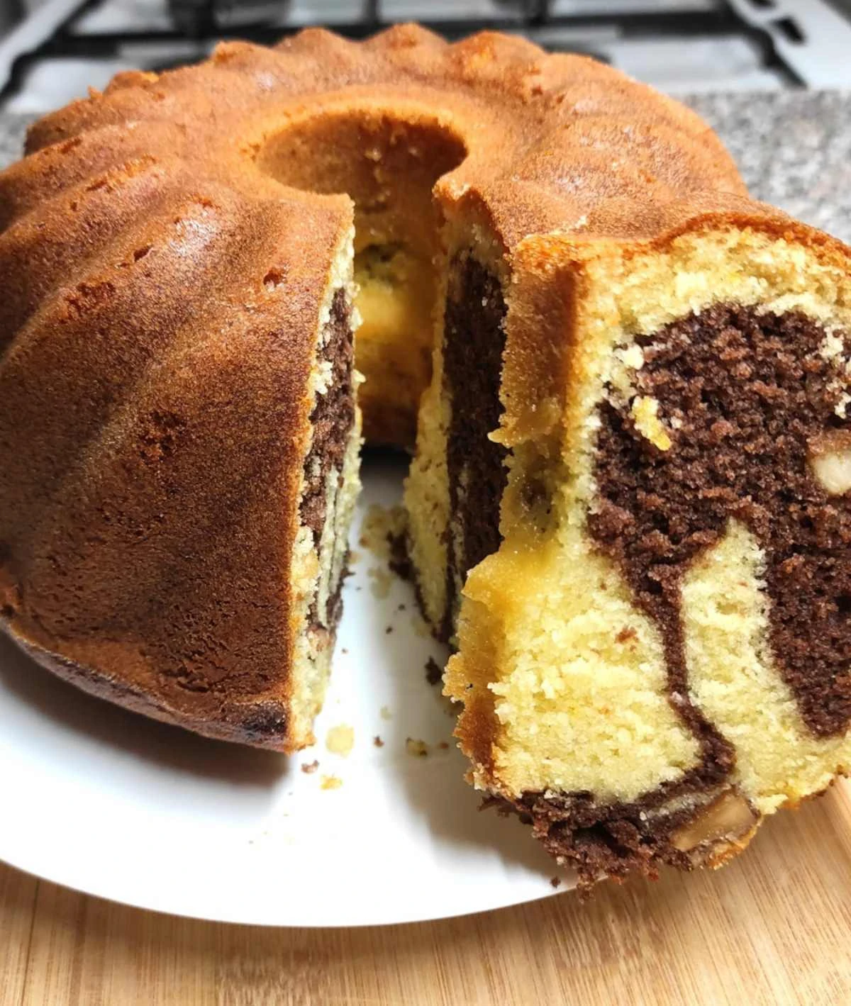 Dieser Marmorgugelhupf ist die ideale Wahl für alle, die unkompliziert backen möchten. Dank des Tassenrezepts ist die Zubereitung wirklich einfach und das Ergebnis begeistert jedes Mal. Die Nüsse verleihen ihm eine schöne Textur und die Kakaoschicht einen intensiven Geschmack. Probieren Sie ihn noch heute aus und Sie werden sehen, dass er zu einem festen Bestandteil Ihres Backrepertoires wird.