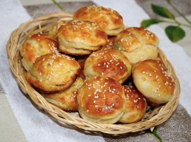 - In einer Schüssel vermischen wir Mehl mit Salz, Butter und Quark. Das Ei verrühren wir mit der sauren Sahne und geben diese Mischung zum Mehl.