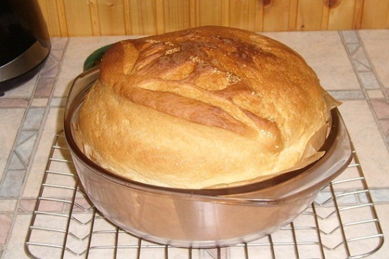 - Anschließend nehmen Sie die Alufolie ab und backen Ihr Brot weitere 20 – 30 Minuten wie gewohnt. Schätzen Sie die Zeit nach der Farbe und der Dicke der Kruste. Wenn Sie es lieber knuspriger mögen, können Sie das Brot noch etwas länger im Ofen lassen.