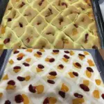 Der eingesunkene Kuchen zeigt, wie ein schneller Becherteiggrund und ein paar zusätzliche Zutaten ein Gebäck zaubern, das allen schmeckt. Das Quarkgitter sorgt für Saftigkeit, das Obst für Frische und die Marmelade für vollen Geschmack. Speichern Sie das Rezept in Ihrem Familienrepertoire – es ist eine verlässliche Wahl fürs Wochenende und für unerwarteten Besuch.