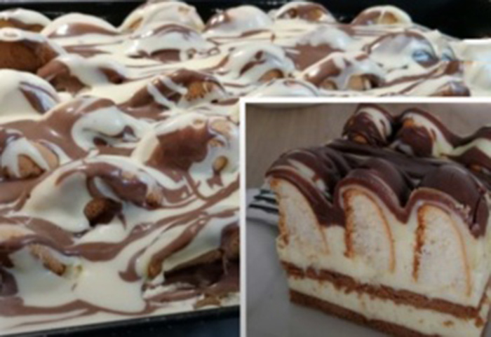 Dieses ungebackene Keksdessert ist nicht nur eine ausgezeichnete Wahl für eine schnelle Bewirtung, sondern auch ein optisch attraktives Dessert, das auf den ersten Blick beeindruckt. Die zarte Vanillecreme ergänzt die Kakaoschicht perfekt und die zweifarbige Glasur verleiht ein luxuriöses Aussehen. Sie werden es bestimmt lieben!
