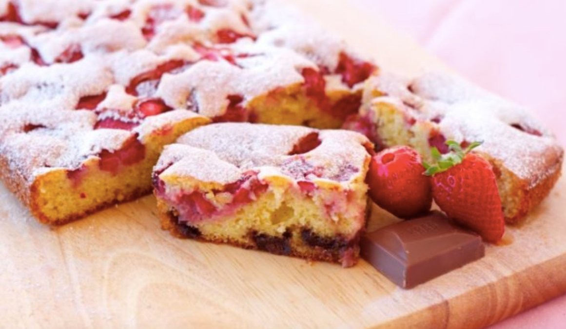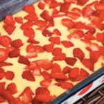 - Nach dem Abkühlen bestreuen wir den Kuchen mit Puderzucker und die Erdbeer-Bublanina ist fertig.