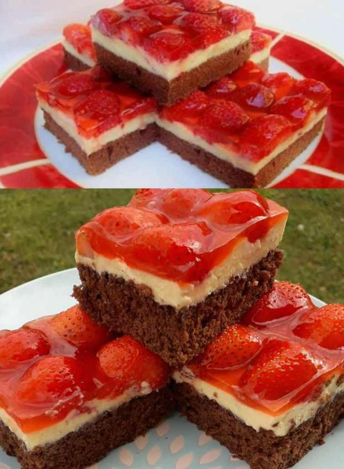 Erdbeerschnitten mit Schokoladenteig und Vanillecreme – ein Dessert für jedermann