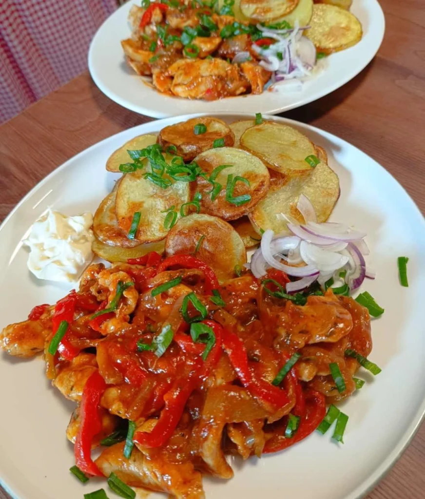 Wenn Sie scharfe und kräftige Gerichte lieben, wird Sie dieses Rezept begeistern. Katův šleh in der extra scharfen Variante ist eine ordentliche Portion pikantes Fleisch mit Gemüse, die Sie bis ins Mark erwärmt. Die Kombination mit hausgemachten Ofenkartoffeln ergibt die ideale Kombination für ein Wochenendmittagessen oder ein schnelles Abendessen. Und das Beste – alles gelingt Ihnen leicht in einer Pfanne und auf einem Blech. Lassen Sie sich von diesem einfachen, aber absolut unwiderstehlichen Rezept inspirieren.