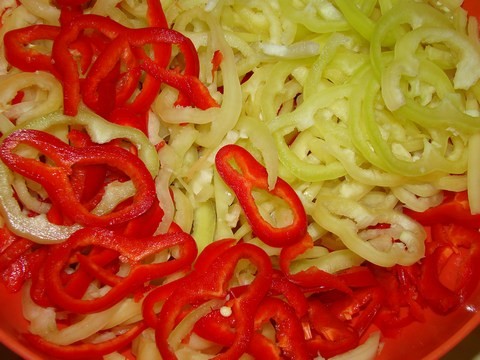 - Die Zwiebeln schälen und in dünne Streifen schneiden.