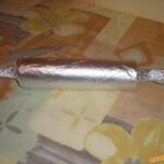 8. Wir bereiten einen klassischen hölzernen Teigroller vor und bedecken ihn vollständig mit Alufolie.