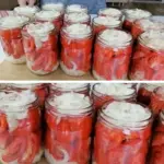 Finnische eingelegte Tomaten mit Zwiebeln sind ein Vorratsklassiker: mit einer Stunde Arbeit haben Sie einen Begleiter fürs ganze Jahr. Geschmacklich klar, knusprig und vollkommen vielseitig – einmal probiert, sind sie auf dem Teller stets willkommen.