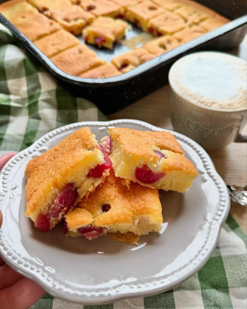 Diese schnelle Bublanina mit Obst ist die ideale Wahl für das tägliche Backen. Wenn Sie kein halbgriffiges Mehl haben, können Sie es durch feines Mehl ersetzen – das Ergebnis wird trotzdem ausgezeichnet sein. Probieren Sie sie mit verschiedenen Obstsorten je nach Saison und genießen Sie einen einfachen, aber bodenständigen hausgemachten Kuchen.