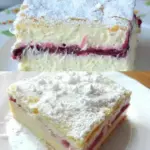 Diese Torte erinnert an den bekannten krémeš, aber statt einer festen Creme verbirgt sich darin eine frische Fruchtfüllung. Die Kombination aus zarter Puddingcreme, frischen Früchten und luftigem, gebackenem Teig macht sie zu einem idealen Sommerdessert.