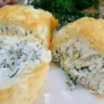 - 4. Zubereitung der Füllung: In der Zwischenzeit die Füllung vorbereiten. Den Quark mit gehacktem Dill, Petersilie und gepresstem Knoblauch vermischen. Mit Salz und Pfeffer abschmecken und die Masse gleichmäßig auf dem abgekühlten Teig verstreichen (etwa bis zu zwei Dritteln).