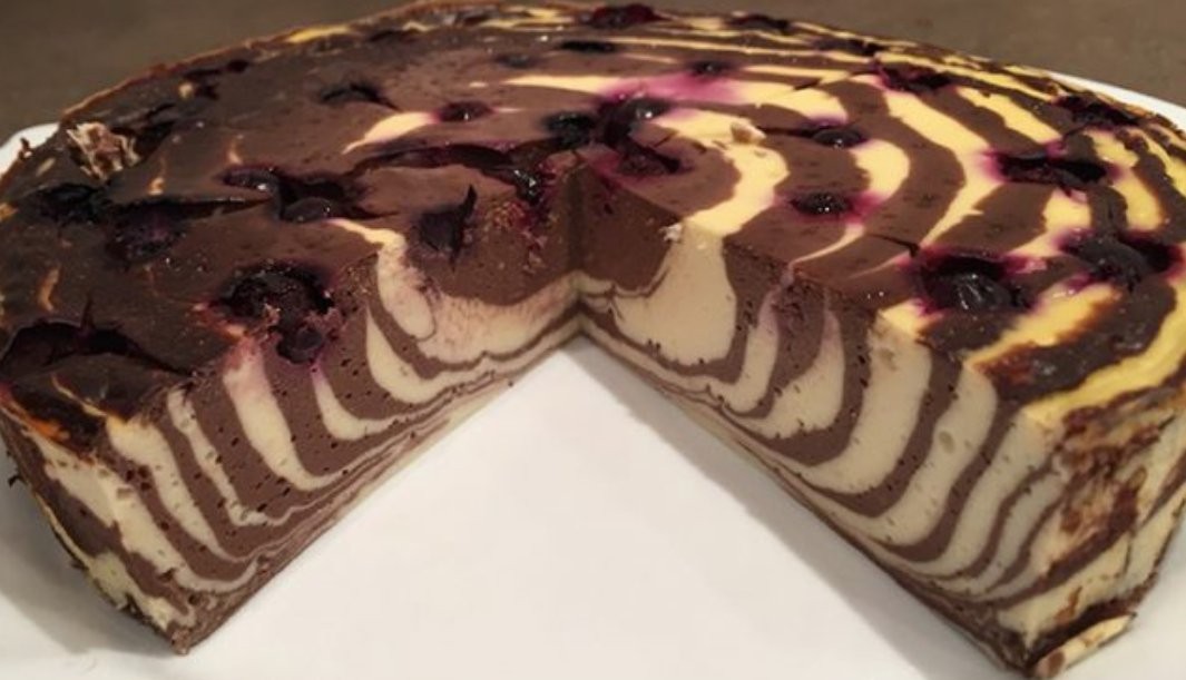 - Wir beginnen, die Teige zu schichten. Die Teige schichten wir abwechselnd zur Mitte der Form. Wir beginnen mit dem hellen und fahren fort, bis beide Teige aufgebraucht sind. Oben legen wir Obst nach Geschmack und geben die Form in den vorgeheizten Ofen.