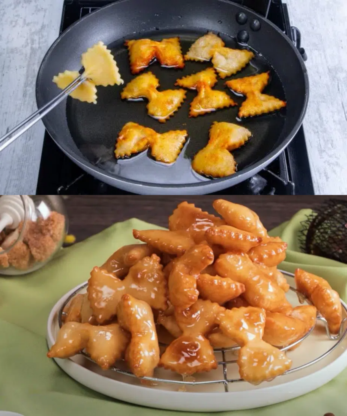 Großartige frittierte Butterkekse im Zuckersirup: eine einfache und günstige Leckerei