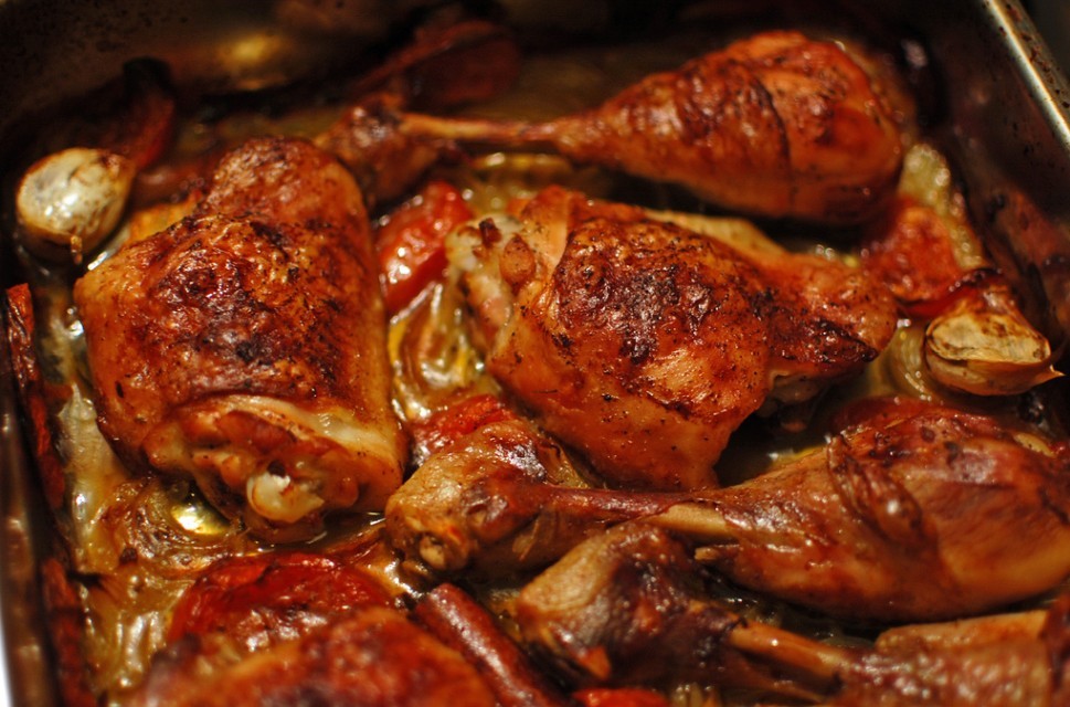 - Schieben Sie den Bräter in den Ofen und backen Sie auf herkömmliche Weise. Während des Backens müssen Sie das Hähnchen nicht wenden. Außerdem können Sie ein paar Knoblauchzehen oder geschnittene Tomaten hinzufügen. Das Fleisch bekommt dadurch einen milderen Geschmack.