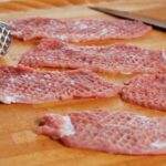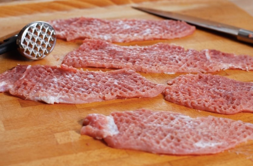 - Das Fleisch klassisch zuschneiden und platt klopfen.