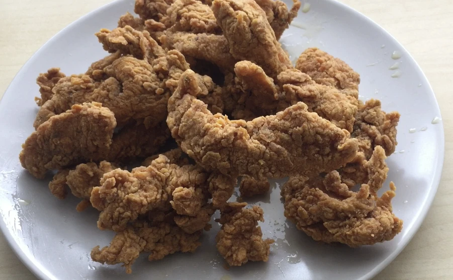 Wenn du den Strips wirklich „KFC styl“ verleihen möchtest, schüttele sie nach dem Panieren leicht in einer Schüssel mit Mehl. Das erzeugt kleine Klumpen und Wellen, die nach dem Frittieren die typische, luftig-knusprige Kruste bilden.