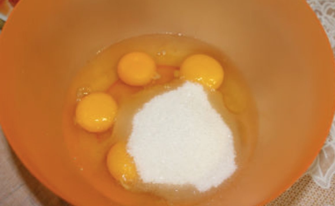- Schlagen Sie in einer Schüssel die Eier mit dem Zucker auf, fügen Sie Kakao, Mehl, Butter, gemahlene Nüsse und Vanille hinzu.
