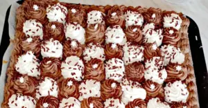 Dieser Kakao-Honigkuchen gehört zu den klassischen Festtagsdesserts, die niemals enttäuschen. Er ist saftig, mit zartem Kakaogeschmack und ergänzt durch eine köstliche Vanillecreme, die sich perfekt mit der Schokoladenglasur verbindet. Genau deshalb wird dieses Dessert zur Zierde jeder Tafel – sei es zu Weihnachten, zu Ostern oder bei Familienfeiern.