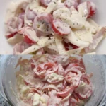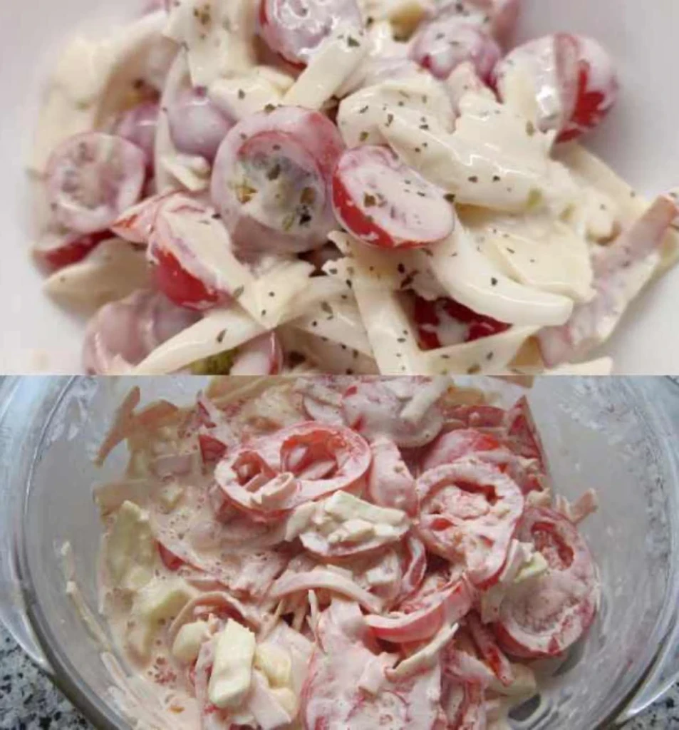 Dieser kalte Salat aus Tomaten, Zwiebeln und Käse ist eine großartige sommerliche Schnellzubereitung, die frisches Gemüse mit Käsegeschmack und einem cremigen Dressing kombiniert. Dank der kurzen Zubereitungszeit und Kühlung haben Sie im Nu ein erfrischendes Gericht zur Hand, das die ganze Familie und Gäste erfreut.