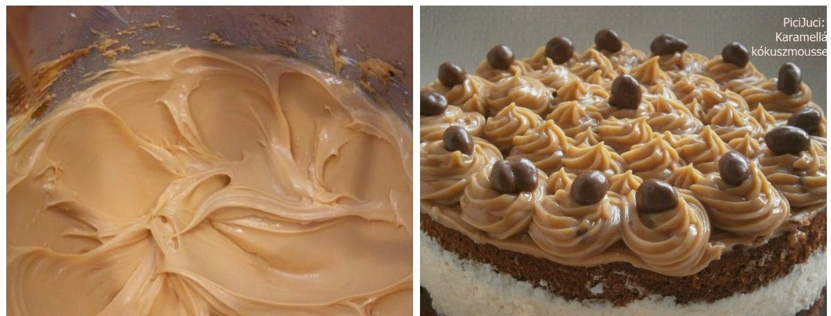 • Jetzt nehmen wir die Creme vom Herd, decken sie mit Frischhaltefolie ab und lassen sie bei Zimmertemperatur abkühlen. Wenn die Creme abgekühlt ist, rühren wir löffelweise die aufgeschlagene Butter unter. Alles gründlich verrühren (wobei man beachten sollte, dass Butter und Karamell beim Zusammenfügen die gleiche Temperatur haben müssen). Man kann die Creme mit einem Tropfen Rum-Aroma verfeinern.