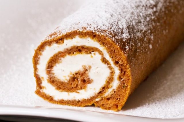 Karottenroulade mit zarter Mascarpone-Creme, vom Zimt durchzogen