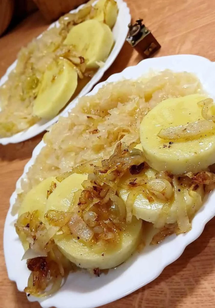 Die traditionellen Kartoffelknödel mit duftender, in Schmalz gebratener Zwiebel und etwas dünnerem Sauerkraut gehörten zu den Lieblingsgerichten meiner geliebten Schwiegermutter. Dank der einfachen Zutaten und des leicht zubereiteten Krauts können Sie dieses herzhafte Familienrezept jederzeit auf Ihren Tisch bringen, wenn Sie Lust auf eine köstliche tschechische Klassik haben.