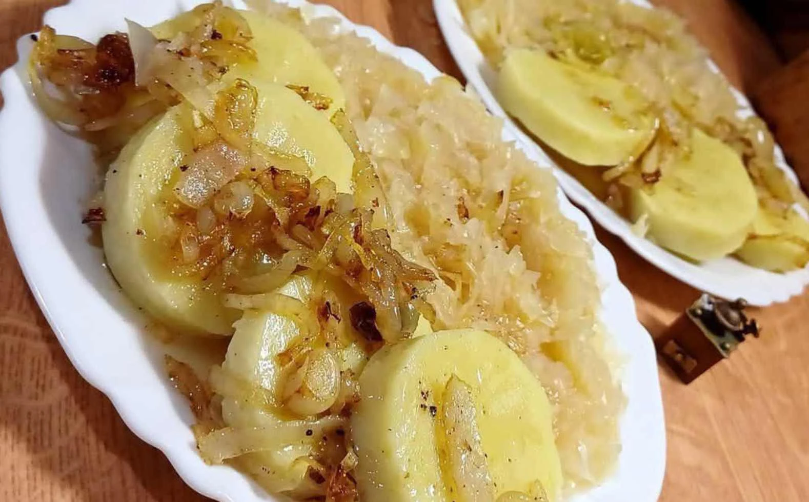 Kartoffelknödel mit in Schmalz gebratener Zwiebel und saurem Kraut recept