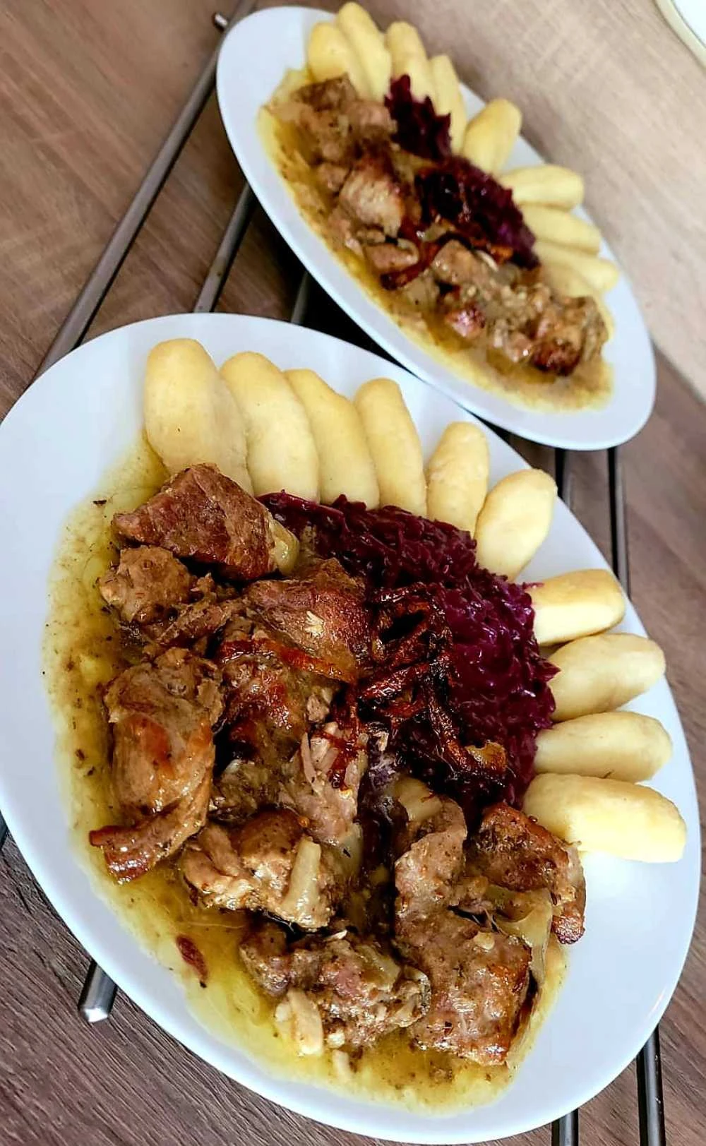 Dieses Rezept für Kartoffelknödel mit Rotkohl und Schweinebraten ist ein ehrliches Beispiel traditioneller tschechischer Küche. Die Kombination aus zartem Fleisch, fluffigen Knödeln und süß-säuerlichem Kohl erfreut jeden Liebhaber hausgemachter Aromen. Probieren Sie es aus und lassen Sie sich geschmacklich zurückversetzen zu einem sonntäglichen Mittagessen bei der Großmutter.