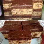 Katarinské řezy sind ein Beispiel solider hausgemachter Konditorkunst. Der kakaohaltige Boden, die Nusslage und die Kaffeecreme ergeben eine luxuriöse Geschmackskombination, die jeden Liebhaber von Desserts erfreut. Dieses Rezept ist ideal für festliche Anlässe, Feiertage oder Familienfeiern – es wird garantiert als erstes vom Tisch verschwinden.