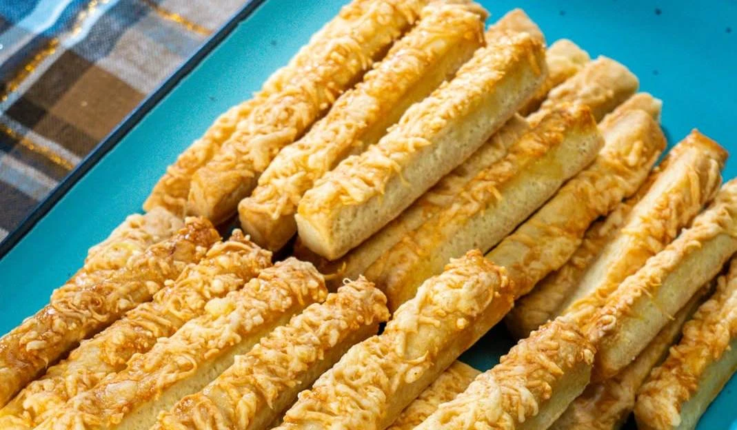 • Backen Backen Sie sie in einem vorgeheizten Ofen bei 180 °C ca. 15–20 Minuten, bis die Stangen goldbraun und knusprig sind.