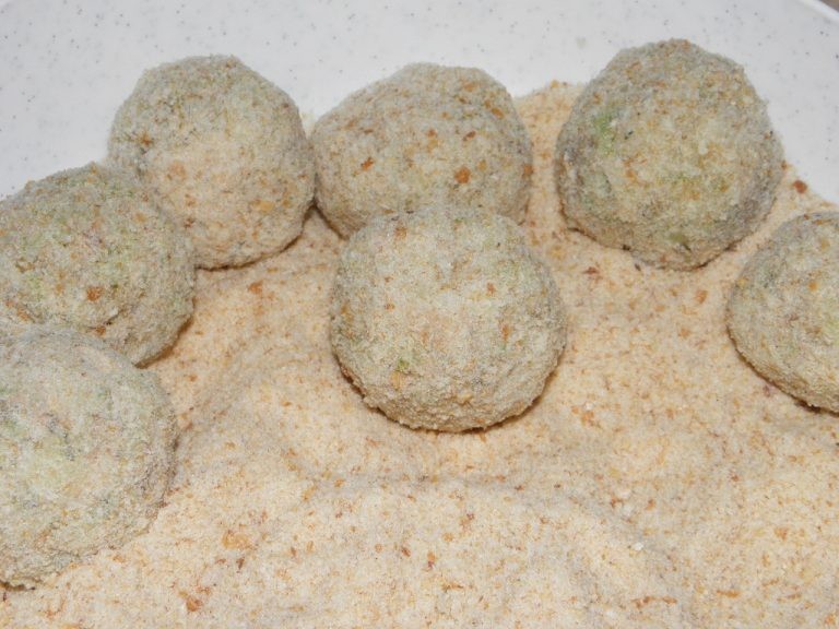 - Vor dem Formen die Hände anfeuchten, die Masse klebt dann nicht. Aus der Masse Kugeln formen, diese in Paniermehl wenden und einfach anbraten.