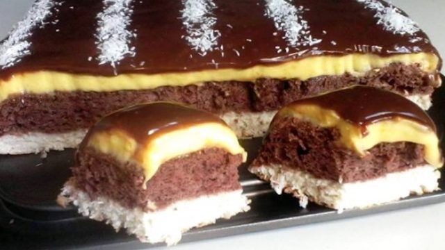 - 1. Zubereitung des Kokosteigs: Schlagen Sie aus dem Eiweiß und einer Prise Salz steifen Eischnee. Dann fügen Sie Zucker, Kokosraspeln und Mehl hinzu. Gießen Sie die Mischung auf ein mit Backpapier ausgelegtes Backblech.