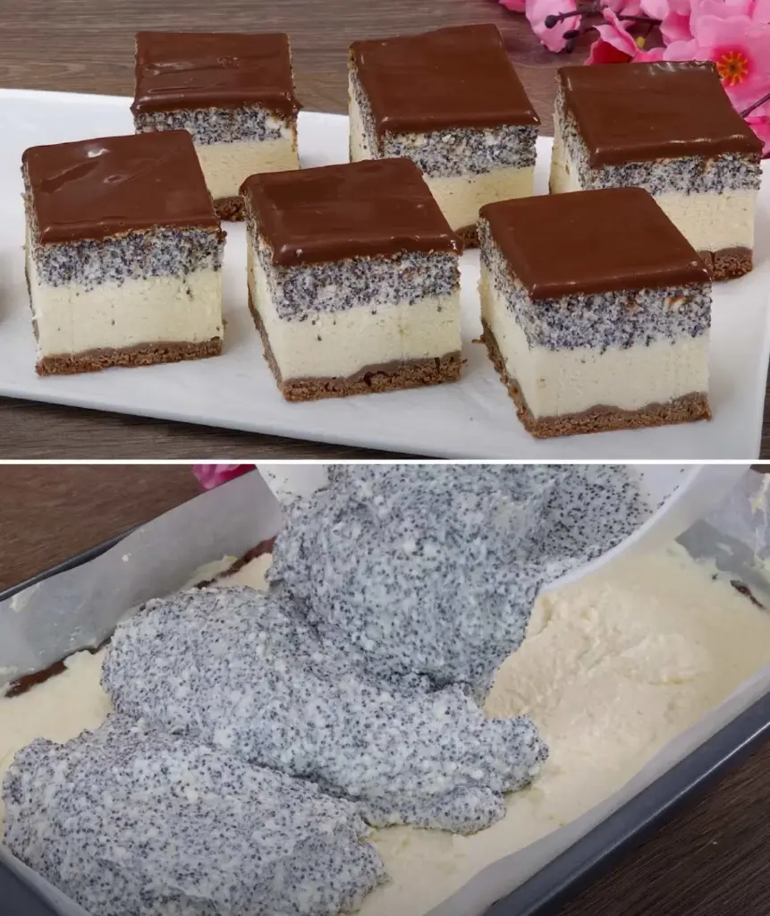 Der Kuchen mit drei Geschmacksrichtungen ist der Beweis, dass die klassische Kombination aus Mohn, Quark und Schokolade nie enttäuscht. Im Anschnitt sieht er beeindruckend aus, geschmacklich ist er voll und harmonisch, und dabei handelt es sich um ein ehrliches hausgemachtes Dessert ohne unnötigen Schnickschnack. Ein großartiger Kandidat für Familienfeiern und den Sonntagskaffee – nach dem Probieren wird er ein fester Bestandteil Ihres Repertoires.