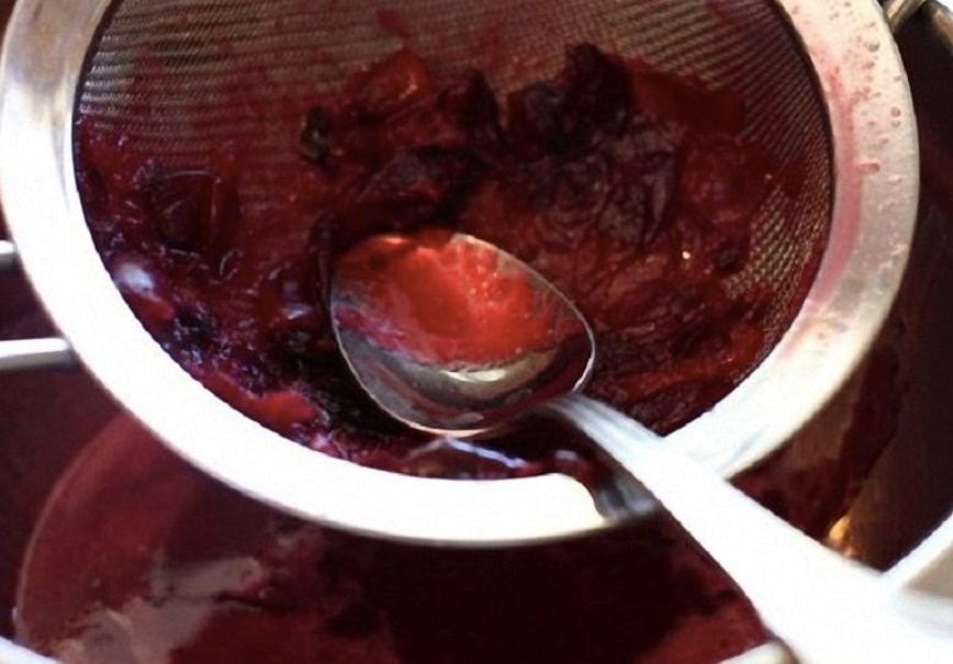 - Nehmen Sie den Topf vom Herd, gießen Sie die Mischung durch ein Sieb und lassen Sie sie abkühlen.