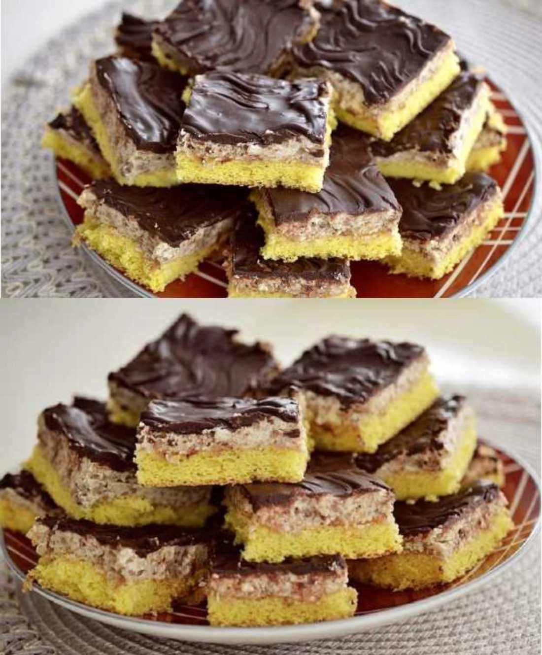 Dieser Blechkuchen mit Nusscreme und Schokolade ist nicht nur ein gewöhnliches Gebäck – er ist ein echter Dessertgenuss für festliche Momente. Der reichhaltige Geschmack der Nüsse, der zarte Butterteig und die perfekt glatte Schokolade bilden eine Harmonie, die jeder Liebhaber Süßes zu schätzen weiß. Backen Sie ihn einmal und er wird bei besonderen Gelegenheiten nie mehr auf Ihrem Tisch fehlen.