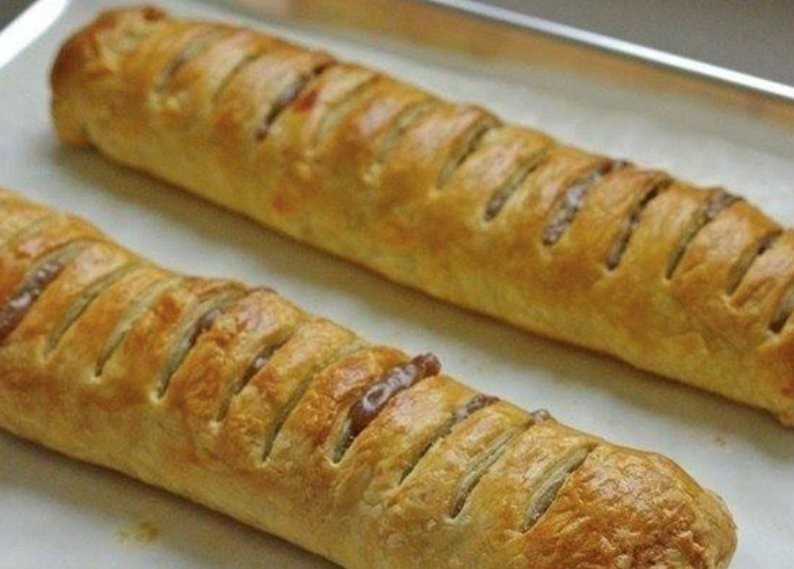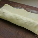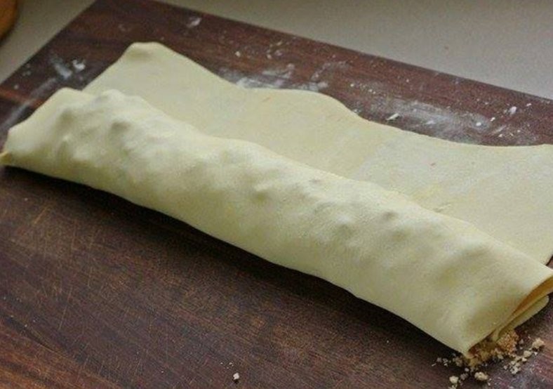 - Die Füllung einrollen und die Ränder zusammendrücken. Ebenso mit dem zweiten Teig verfahren.