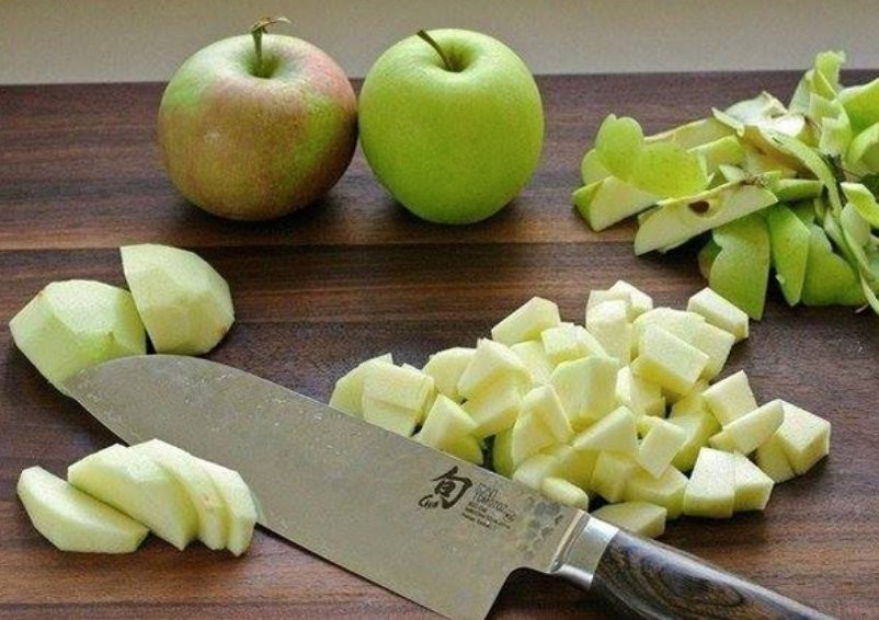 - Äpfel schälen, das Kerngehäuse entfernen und in Stücke schneiden.