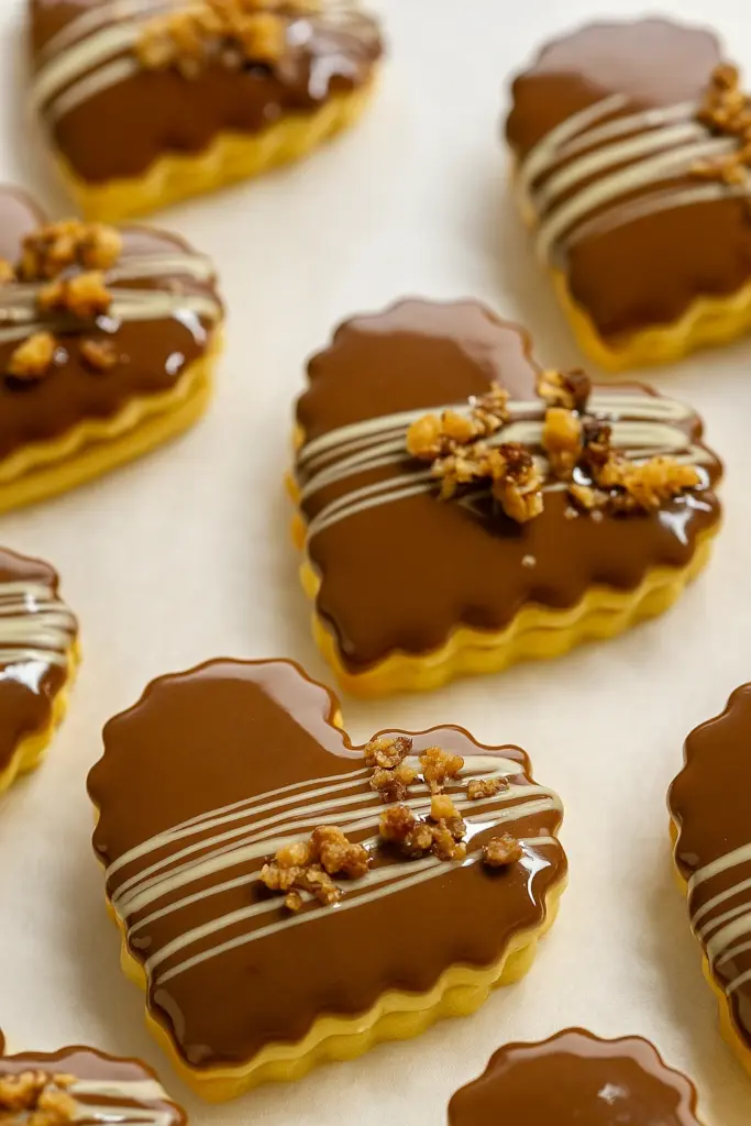 Die Margot-Herzchen sind eine ausgezeichnete Wahl für alle, die ein Gebäck mit originellem Geschmack und intensivem Aroma suchen. Dank des butterigen Teiggrunds werden sie schon wenige Tage nach dem Zusammensetzen schön weich. Wenn Sie den Teig im Voraus zubereiten, können Sie das Backen in Etappen aufteilen und die Arbeit stressfrei erledigen. Die Glasur aus Ledové kaštany verleiht dem Gebäck einen einzigartigen Geschmack und ein Aussehen, das auf dem Tisch wirklich auffällt. Das Rezept ist erprobt, stabil und zuverlässig – ideal für hausgemachtes Gebäck und festliche Platten.