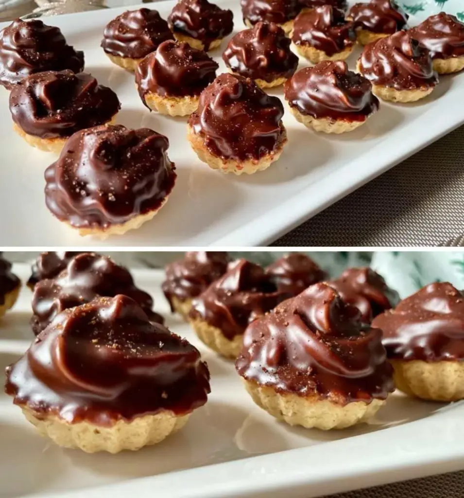 • Füllen der Körbchen Die abgekühlten Körbchen innen mit Marmelade bestreichen. Mit der Nussmasse füllen (ca. 1 Teelöffel pro Körbchen). Mindestens 30 Minuten im Kühlschrank kühlen lassen. Anschließend die Schokoladencreme auf die Nussfüllung spritzen und erneut 30–60 Minuten kühlen.
