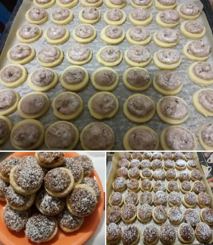 Füllung sparsam auftragen, beim Backen geht sie leicht auf