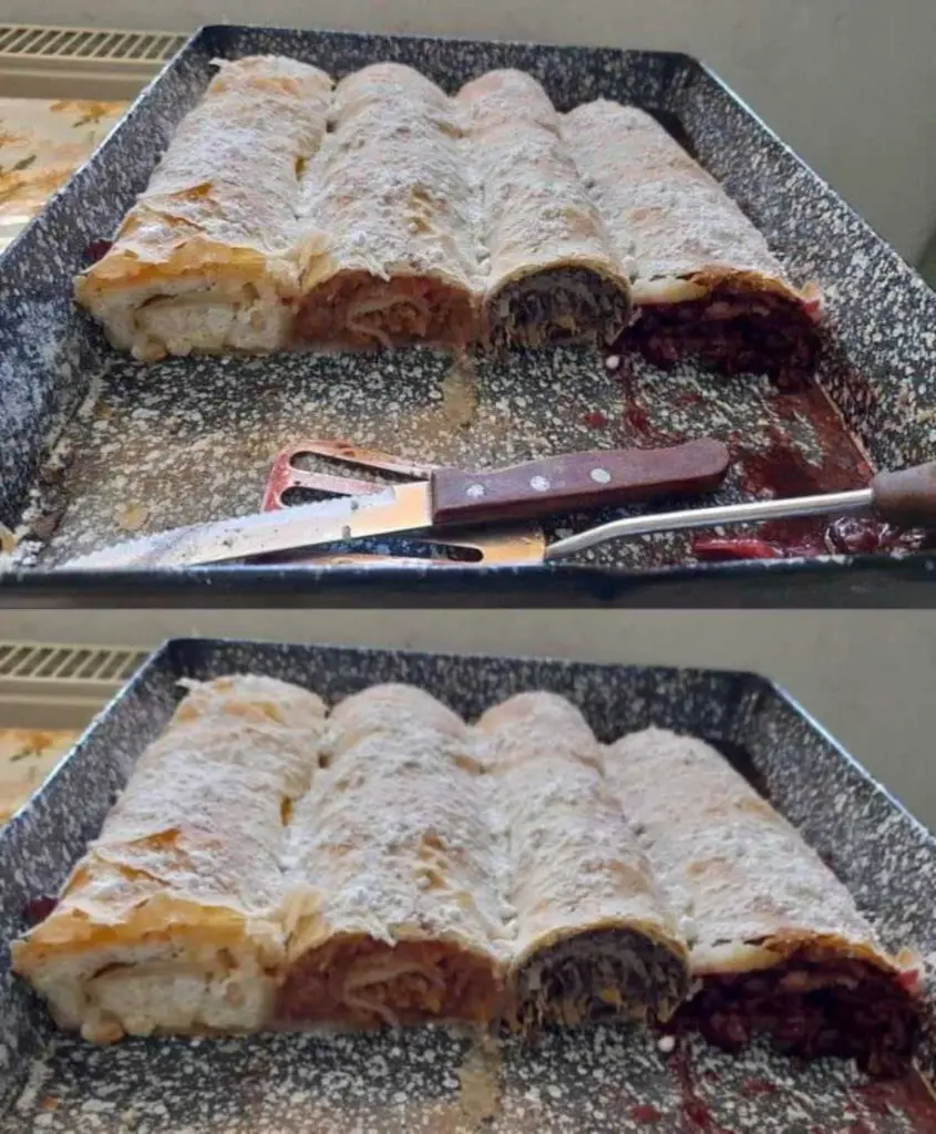 Omas Strudel ist ein vielseitiges Rezept, das Sie leicht an jede Füllung anpassen können. Dank des einfachen Teigs mit saurer Sahne gelingt er auch in letzter Minute. Servieren Sie ihn warm oder ausgekühlt, er schmeckt immer hervorragend zu einer Tasse Kaffee oder Tee. Vergessen Sie nicht, mit den Füllungen zu experimentieren und eine Prise Zimt oder gehackte Nüsse für noch intensiveren Geschmack hinzuzufügen.