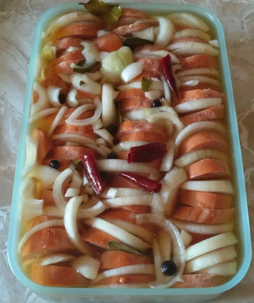Opas Utopenci sind eine sichere Wahl. Süß-säuerige Bierlake, scharf gewürzte Zwiebel und Senf in einem Schnitt des Speckwürstchens schaffen einen Geschmack, der sich mit jedem Tag der Reifung mildert und abrundet. Bereiten Sie gleich zwei Gläser vor, das erste verschwindet überraschend schnell.