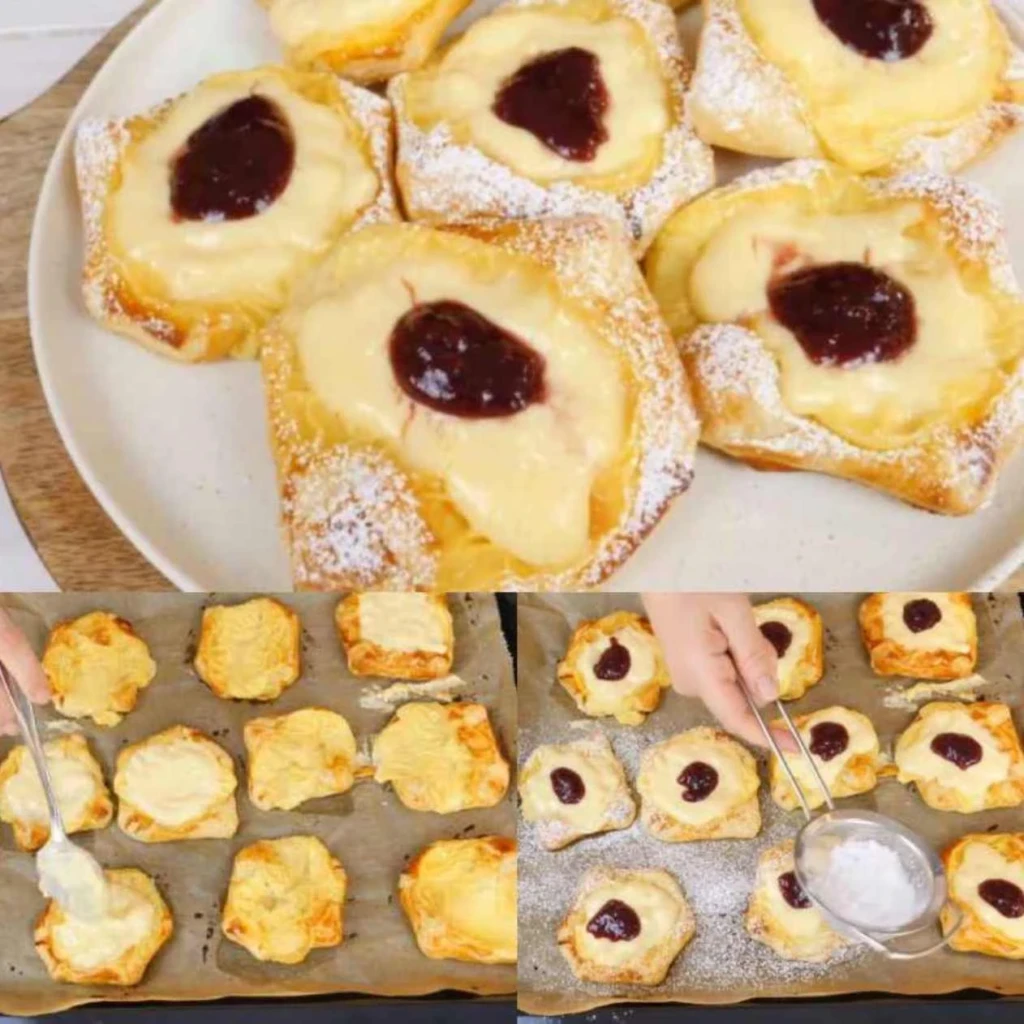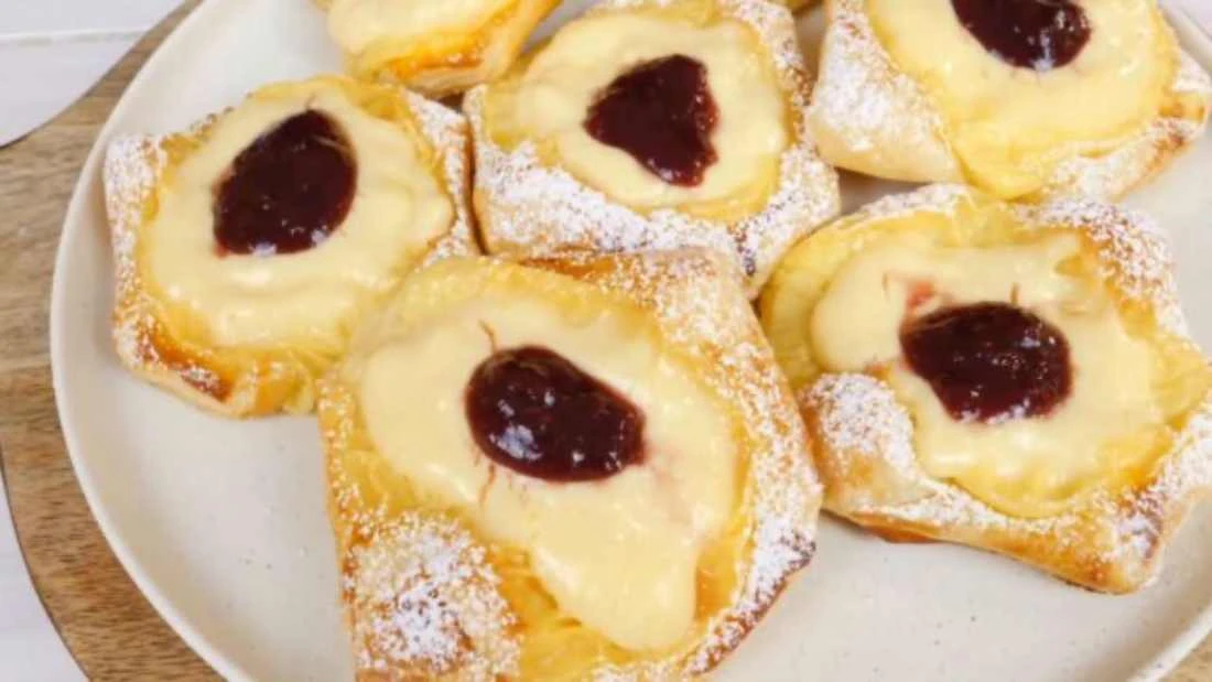 Bereiten Sie eine Tasse heißen Tee vor, versammeln Sie die Familie um den Tisch und lassen Sie sich vom zarten Geschmack dieser fluffigen Blätterteigtaschen mit hausgemachtem Vanillepudding verzaubern. Dieses Rezept verwendet ein paar Grundzutaten und bietet dennoch eine wahre Köstlichkeit, die verschwunden ist, bevor Sie „Naschen“ sagen können.